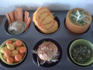 Pumpkin and kumara hummus with carrot sticks.