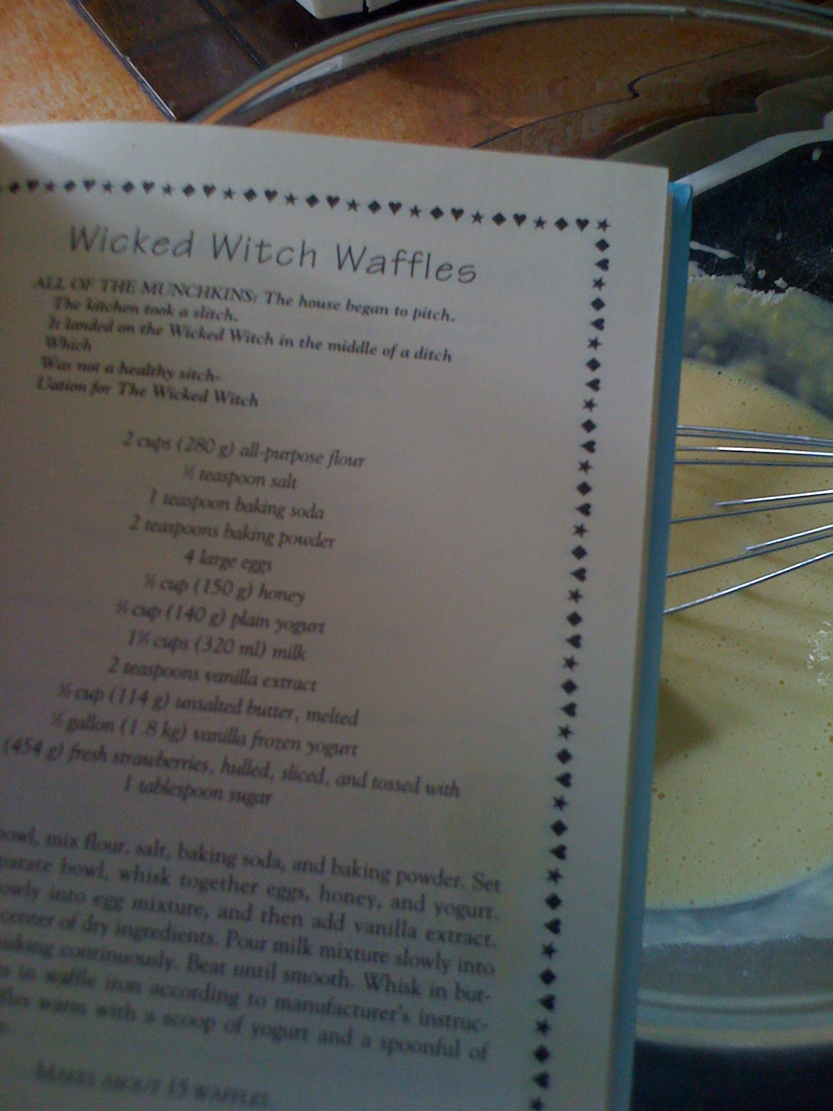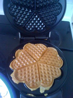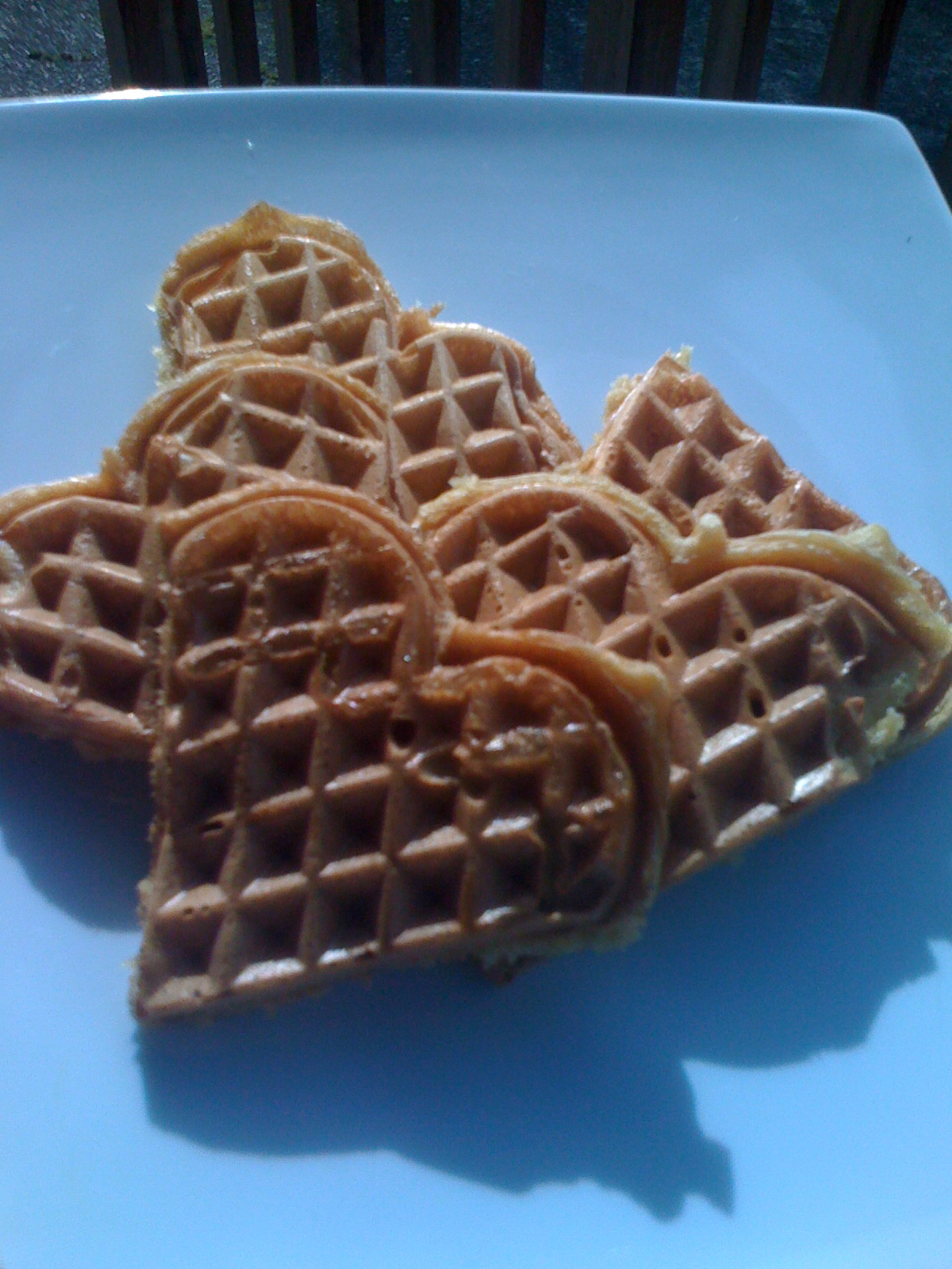So, I got a waffle maker, and I finally got up the courage to make them. As the whole concept of separating eggs terrifies me, I kept looking for a recipe that had nothing to do with it.