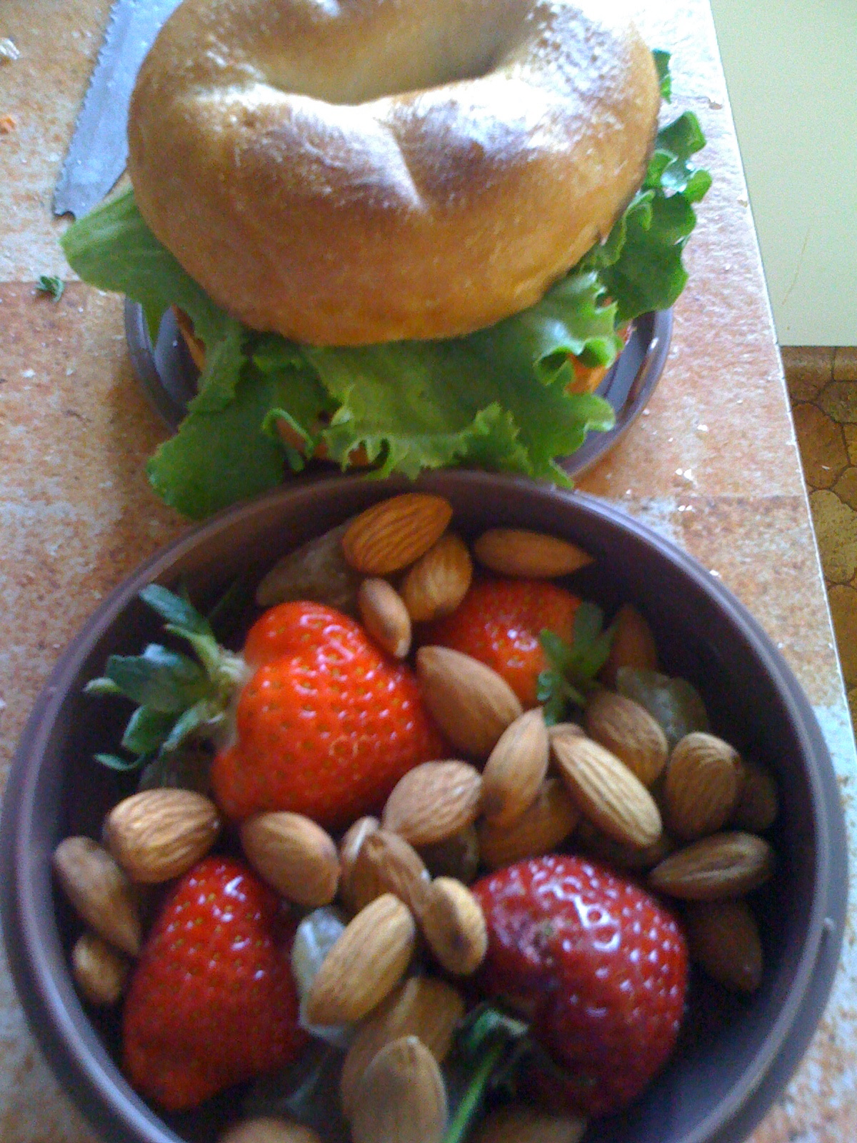 Here we have an avocado, lettuce and tomato wholemeal bagel….. lettuce fresh from the garden.