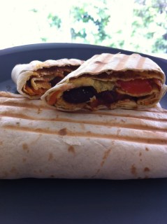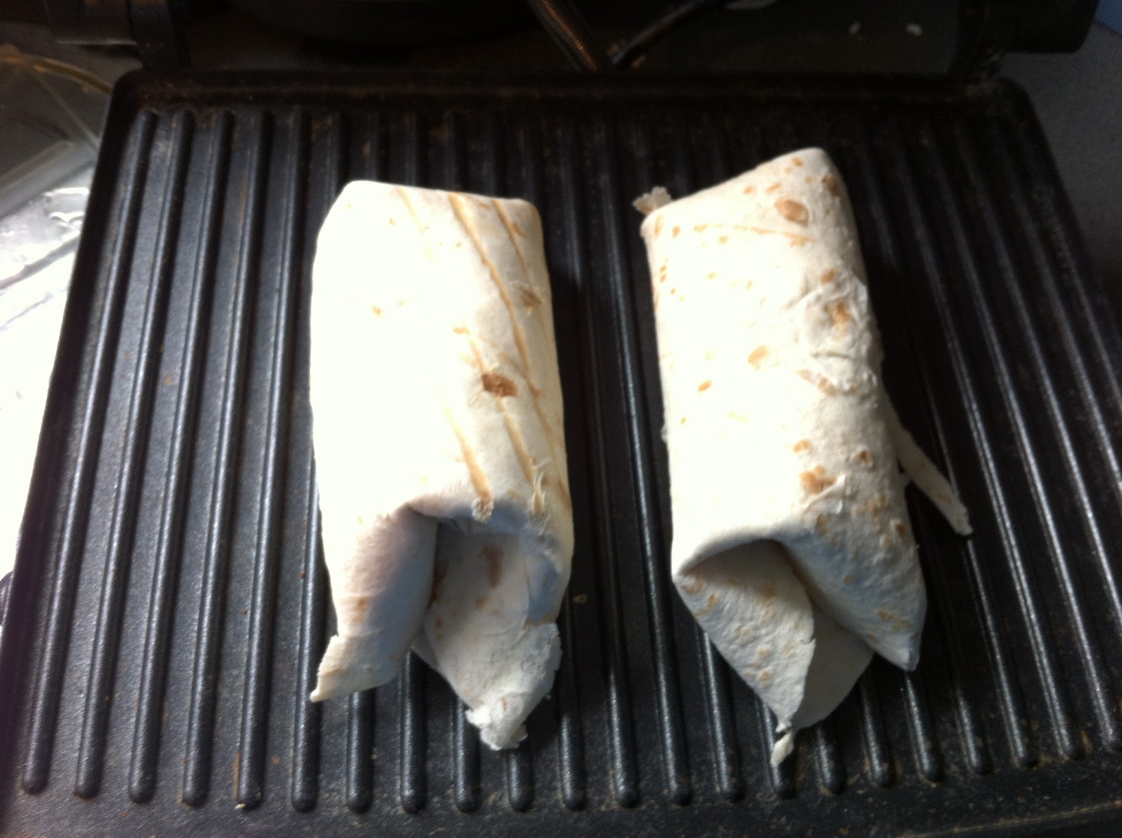 6. Roll each burrito into a roll, and place in a sandwich press. Heat for a minute or so.