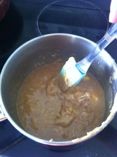 In a saucepan, melt the butter, honey and peanut butter together. I didn’t have crunchy peanut butter- because I had eaten it all…. and used the smooth. It works, but it is not as good. Boil the mixture, don’t be tempted to taste it…. I usually can’t resist and then regret it.