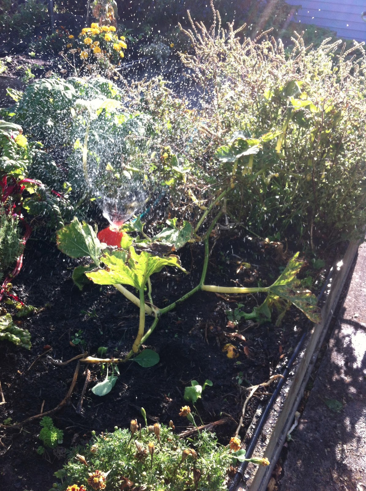 | The pumpkin and silver beet patch |