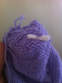 Knit 1 small, 1 large, 2 small, 1 large and 1 small in this order, leaving them all on the same needle. Slide all together and knit as one piece as the body.