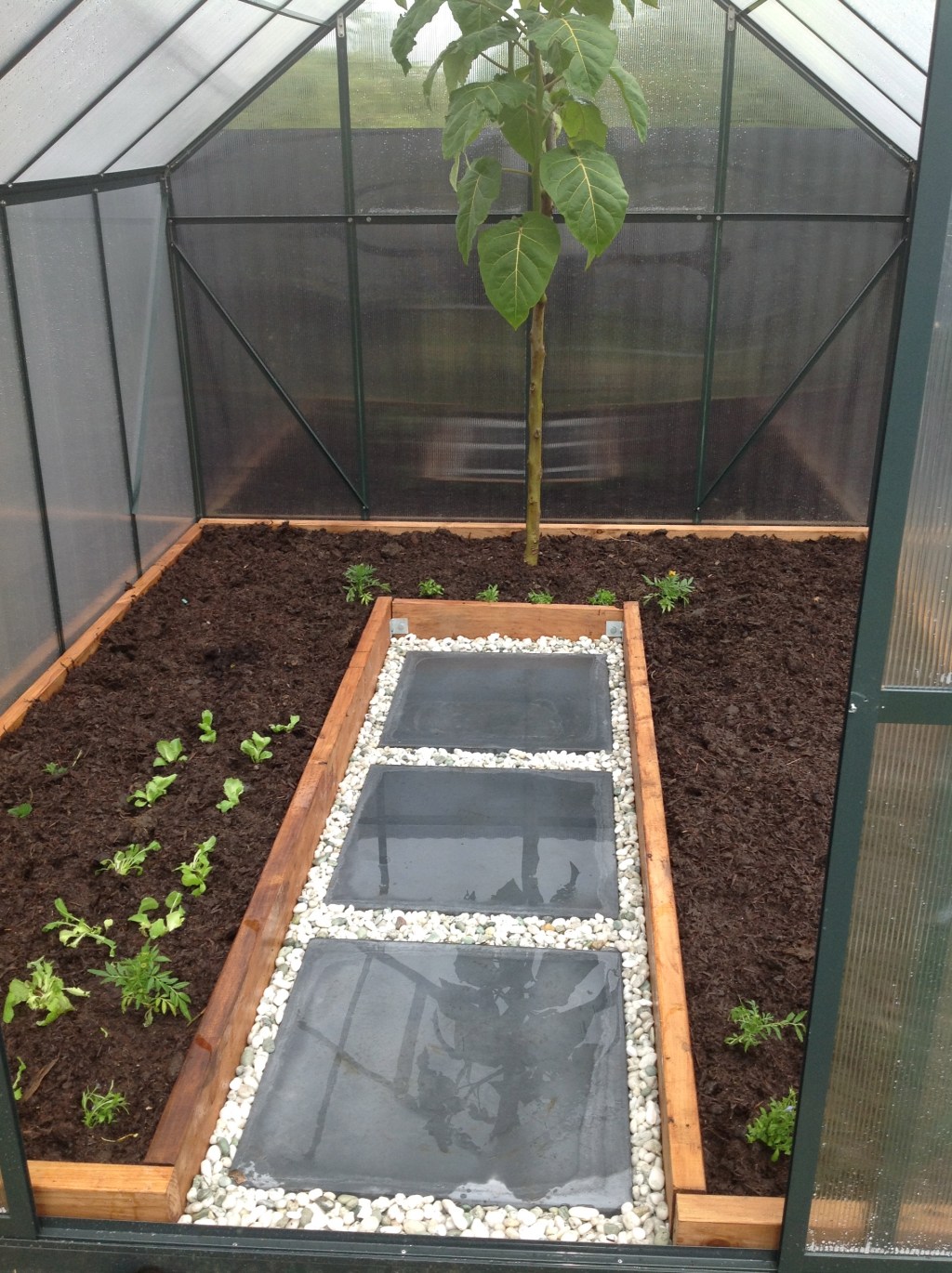 So it’s a lot to weigh up. Firstly, decide how you are going to user he greenhouse. We decided we wanted to grow a wider range of crops, and for a longer period (eg, all year). To this end, we opted for planting in-ground. We did how ever decide to build a raised garden inside the greenhouse to try and limit the cooling of the soil over winter. Time will tell if we are right.