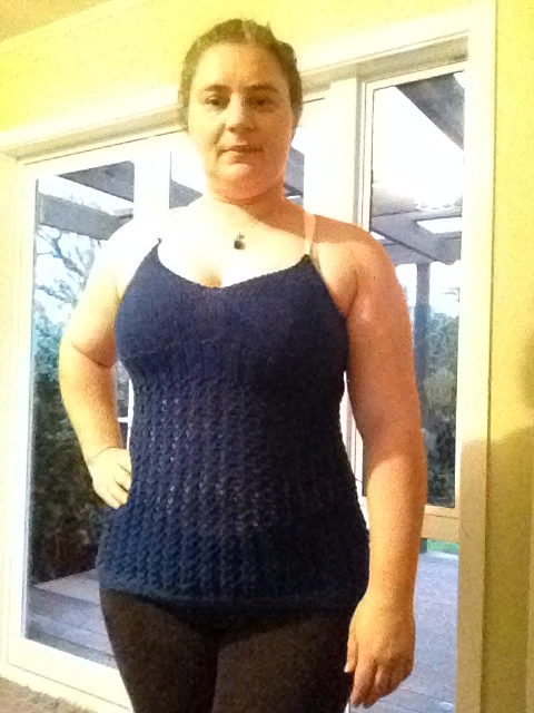 Anyway, here is a great lace singlet that fits people with large boobies. The pattern stretches a lot, so fits a size 12-18, or a medium to large sizing really.