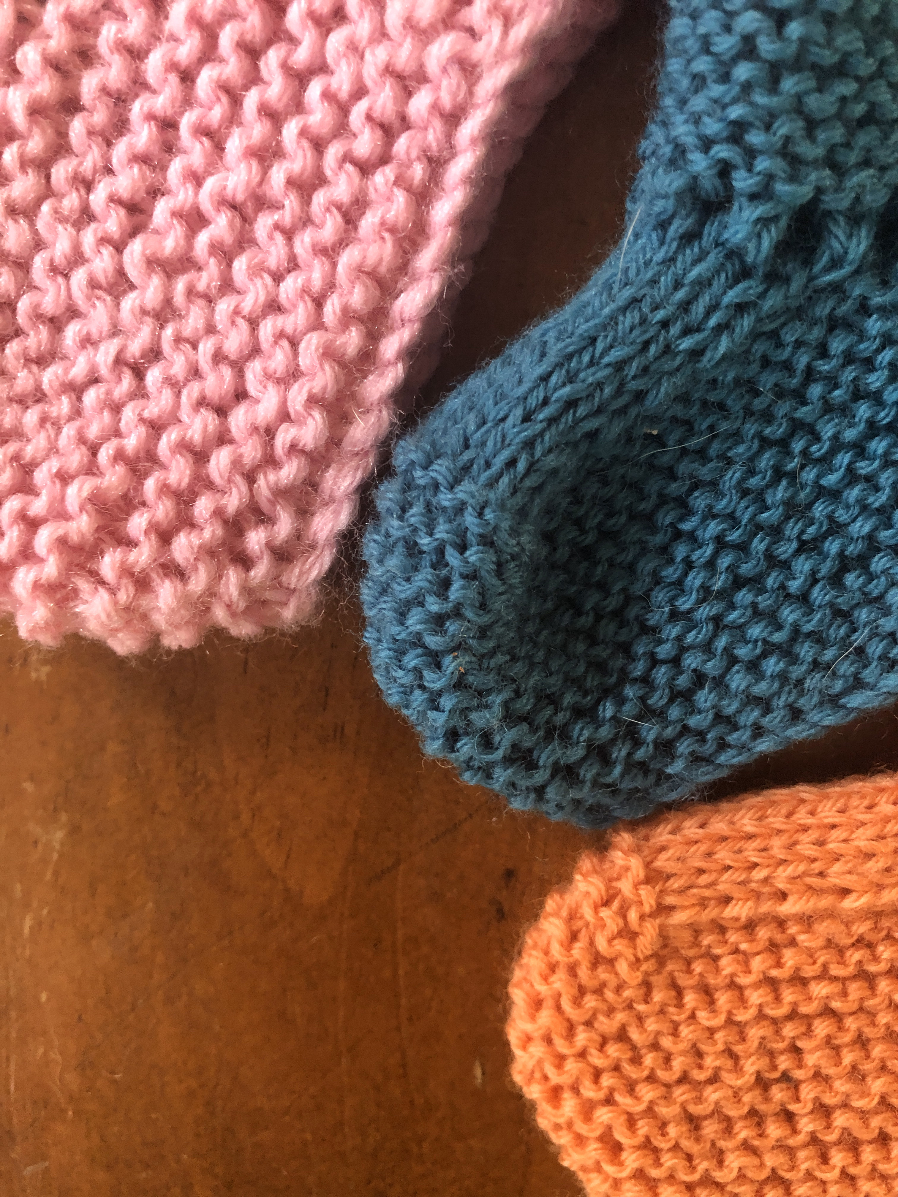 I’ve been knitting a lot of baby booties over the years and over the last few weeks. For so many years I did everything in 8ply (DK) yarn, including collecting a swag of baby yarn in DK. My theory was that it’s an easy size to knit- it’s easy to hold, knots neatly and quickly, and is warm. Then over the last few years I have begun working on smaller needles and smaller yarn (including knitting seriously tiny things). So I’ve been knitting up an experiment- 8ply vs 4ply versions of booties.