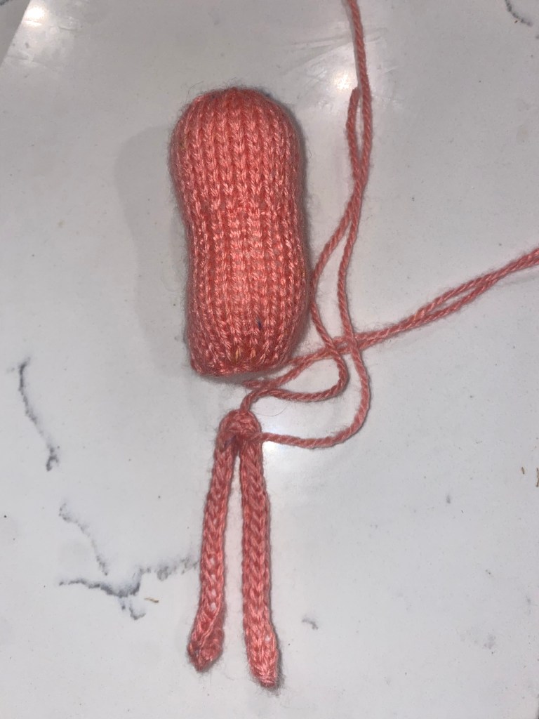 Special terms and words: knitting and purling used. Stockinette is just alternating rows of Knit and Purl (with the purl being on the inside mostly). Icord used – which is essentially 3 stitches on double pointed needles where instead of turning your work, you slide the work to the other end of the needle and continue knitting. CCD – centre double decrease. This is done by slipping 2 stitches together as if to knit, knit the next stitch, and then pass the 2 slipped stitches over the stitch just knitted. I will make video tutorials if needed.