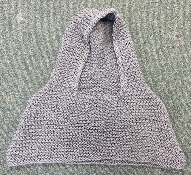 Teaching Drama often leads to a lot of costume and set construction… and occasionally this crosses over into knitted projects. Here is a pattern for a chainmail coif or head covering that I have designed for “Robin Hood”.