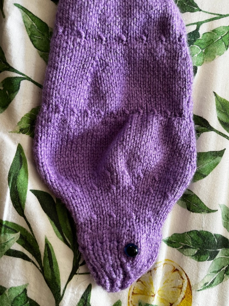 Make 4 fins, leaving them all on the same needle. Slide all together and knit as one piece as the body.