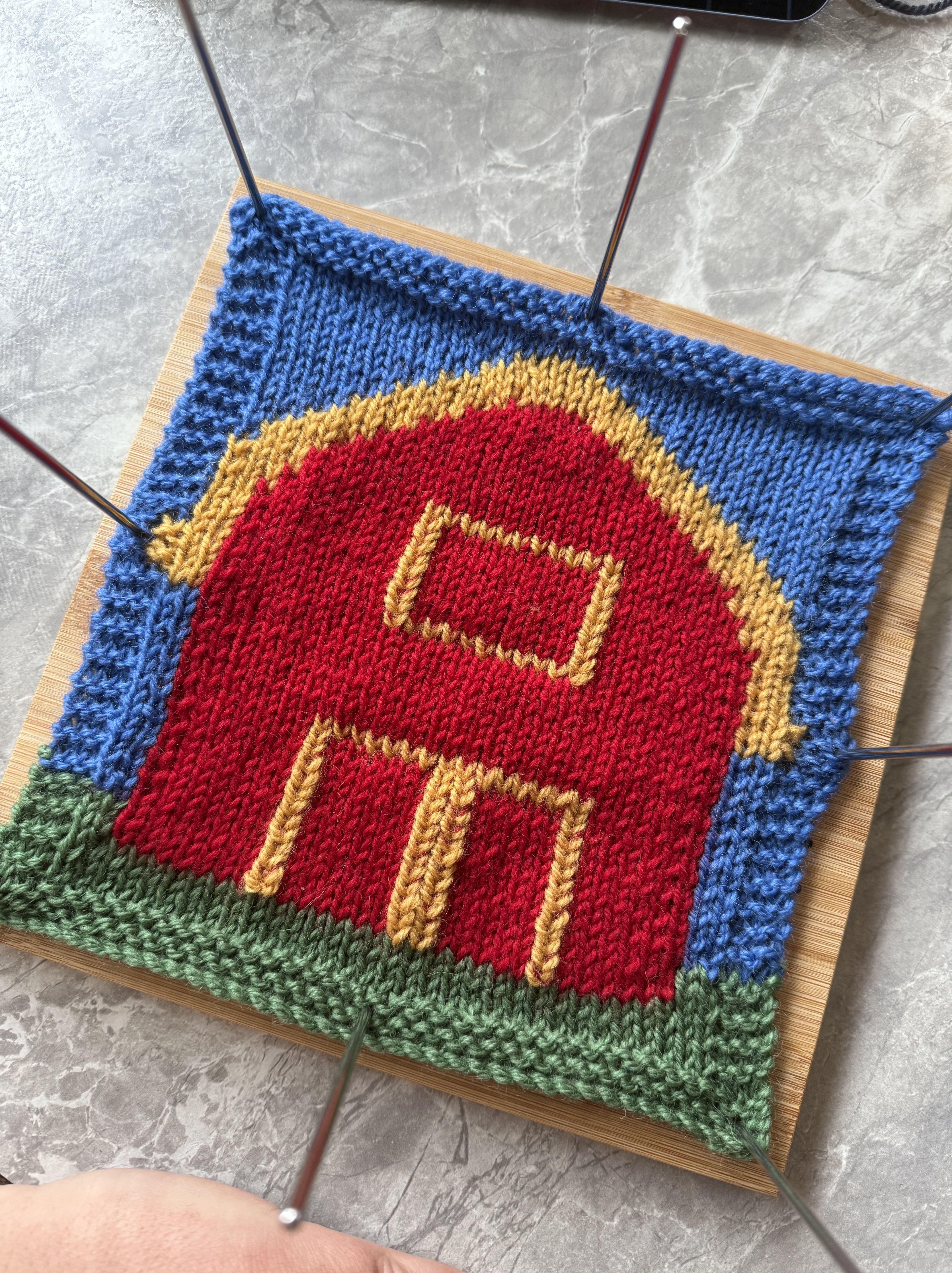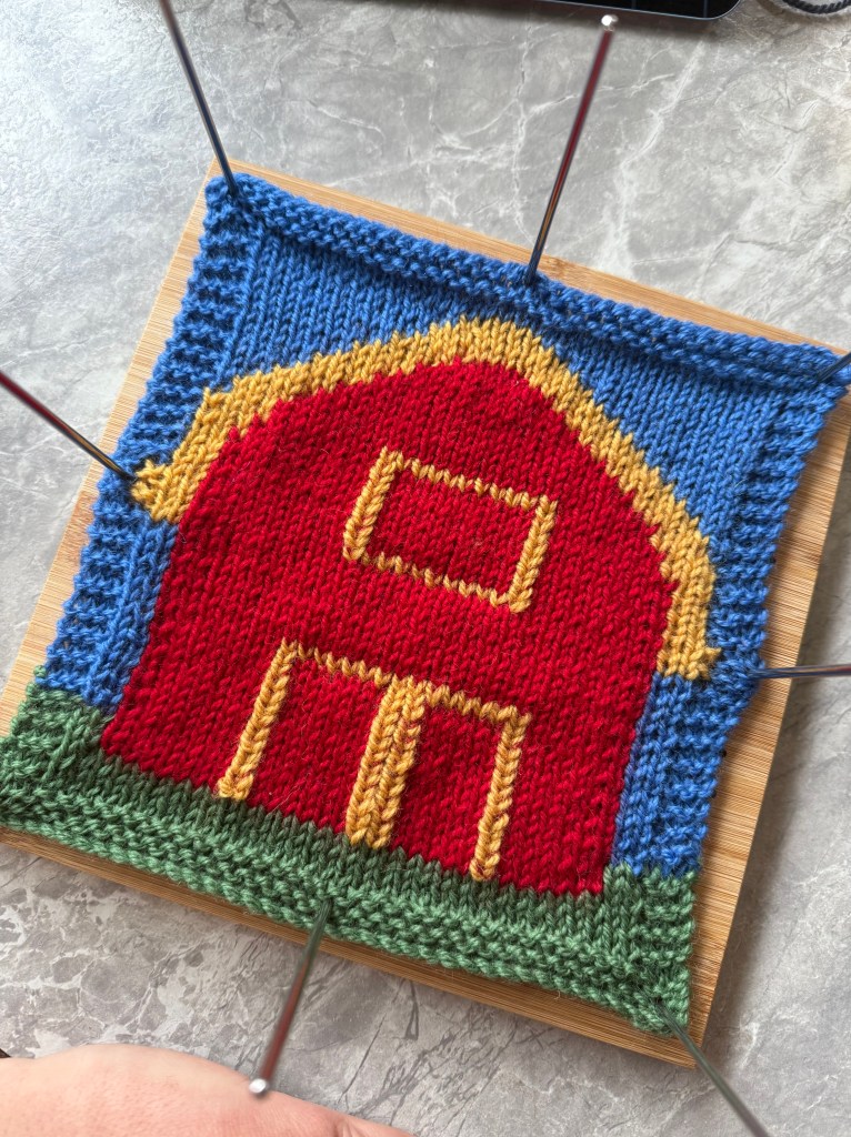 Incase this is confusing….. I called the introduction and supplies part 1…. This is the 9th part we will be knitting. There are 12 parts that involve making in this project, and 25 pieces overall. You may spread these out as you will. This is the Barn Block.